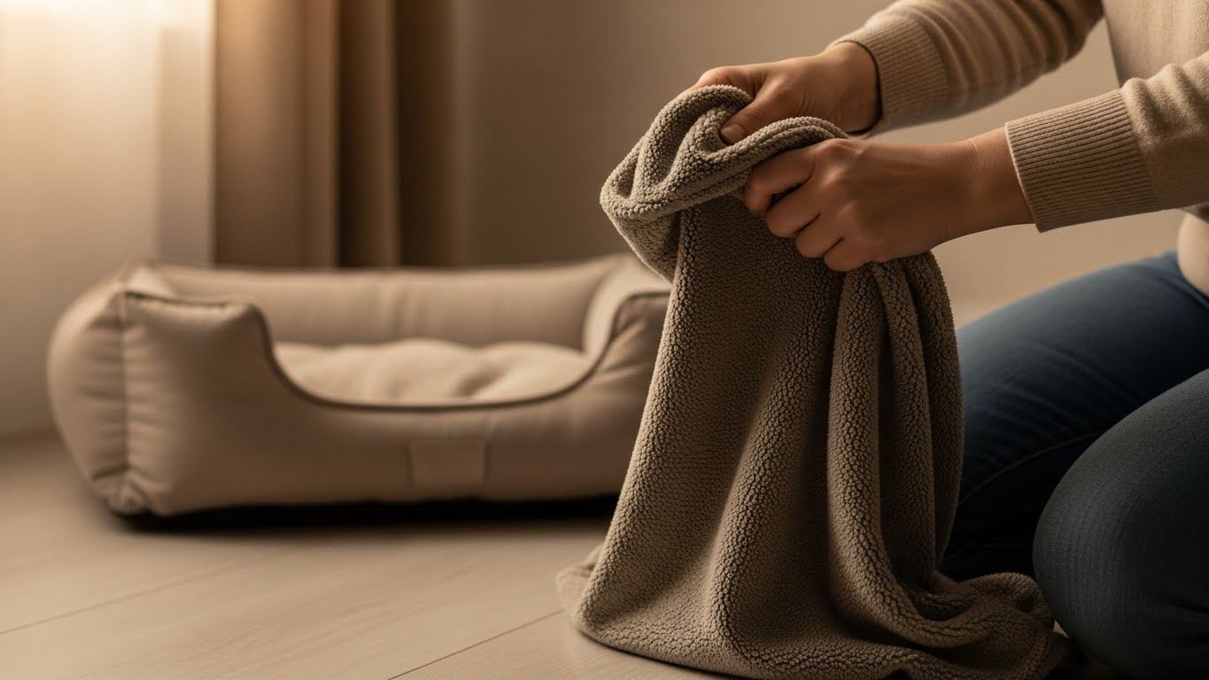 ☑ いつもの匂いがついた毛布やタオルを置いてみる