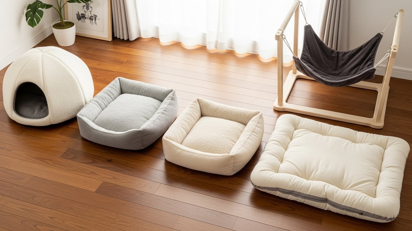 ドーム型、オープン型、ハンモック型など形状の特徴を知り、普段の行動を観察しながら選ぶことで、お気に入りの寝床が見つかりやすくなります。