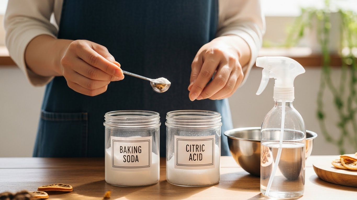 重曹は弱アルカリ性で、油脂汚れや酸性の臭いに効果を発揮します。