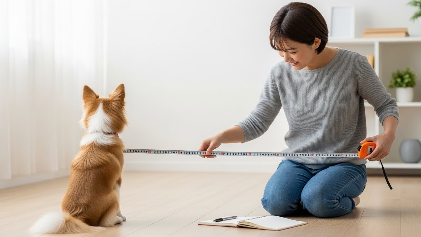 愛犬が横になった状態で、鼻先からお尻までの長さを測りましょう。