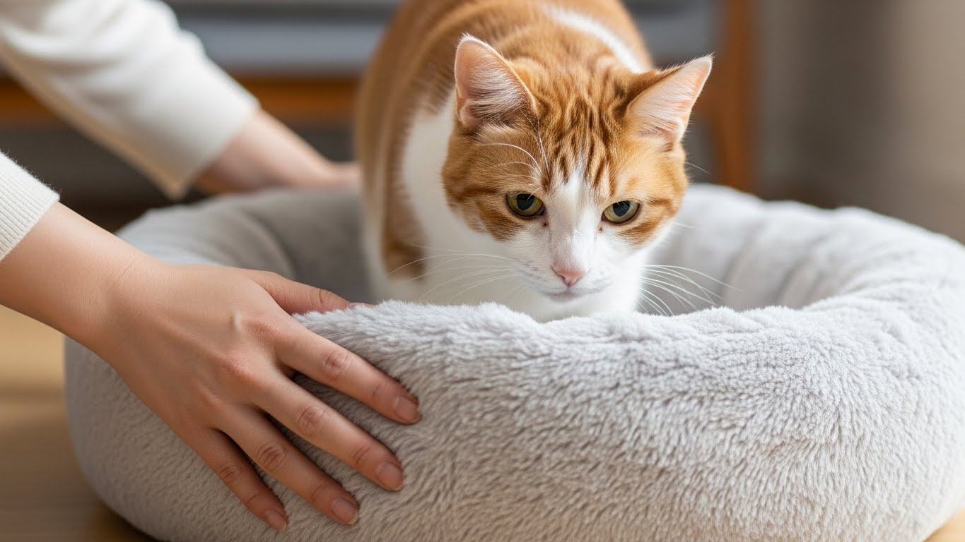 愛猫が普段使っている毛布やタオルをベッドに入れてあげると、安心して入ってくれることも♪