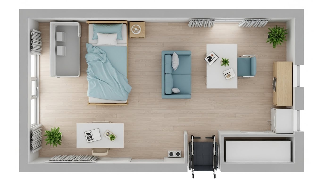 ☑ 部屋の広さは十分か(ベッド周囲に50cm以上のスペースがあると◎)