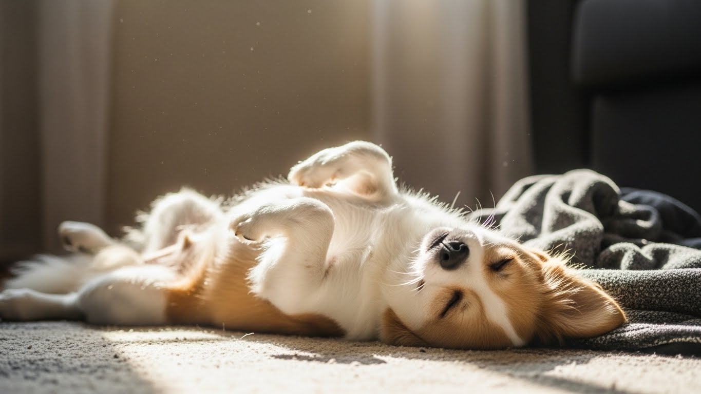 犬が仰向けで寝る理由は、リラックス、甘え、体温調節、服従のサインなどさまざま。