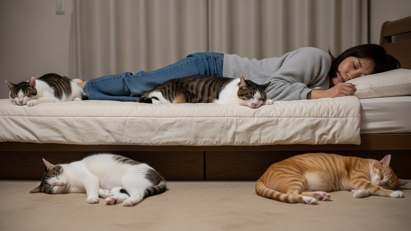 猫が飼い主のそばで寝るとき、どの位置を選ぶかで心理状態が違います。